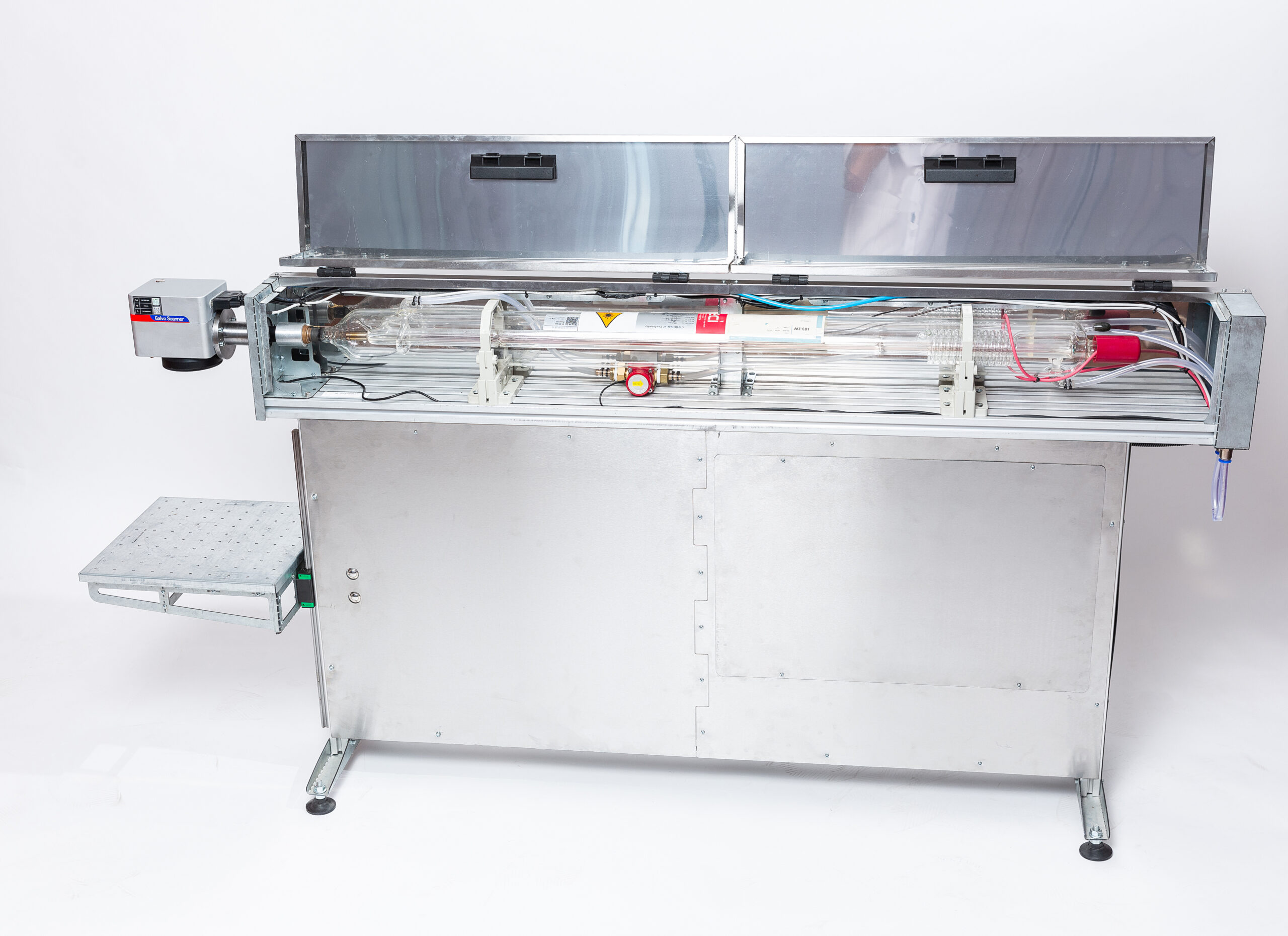 Станок приходить у зібраному вигляді, тому може бути встановлений навіть у приміщенні з вузькими проходами. Завдяки своїй простоті та компактності – гравер може бути встановлений на звичайний робочий стіл. Пристрій має компоновку з двох блоків – блок гравера за штативом та чілер(холодильник). Зверніть увагу – ці блоки можна роз’єднувати, ставити поряд. GalvoBot здатний працювати 24/7 та не потребує особливого догляду. Все що вам залишається – ознайомитися з інструкцією та почати працювати. В комплекті програмне забезпечення яке налаштовано для роботи з обраною лінзою. Ми використовуємо тільки ліцензійні плати керування, тому на відміну від китайських аналогів, у Вас не буде проблем з встановленням драйверів та з програмним забезпеченням для будь-яких операційних систем. Зверніть увагу, для роботи Mac ОС – вам слід використовувати платну програму LightBurn, що не входить у вартість верстату.