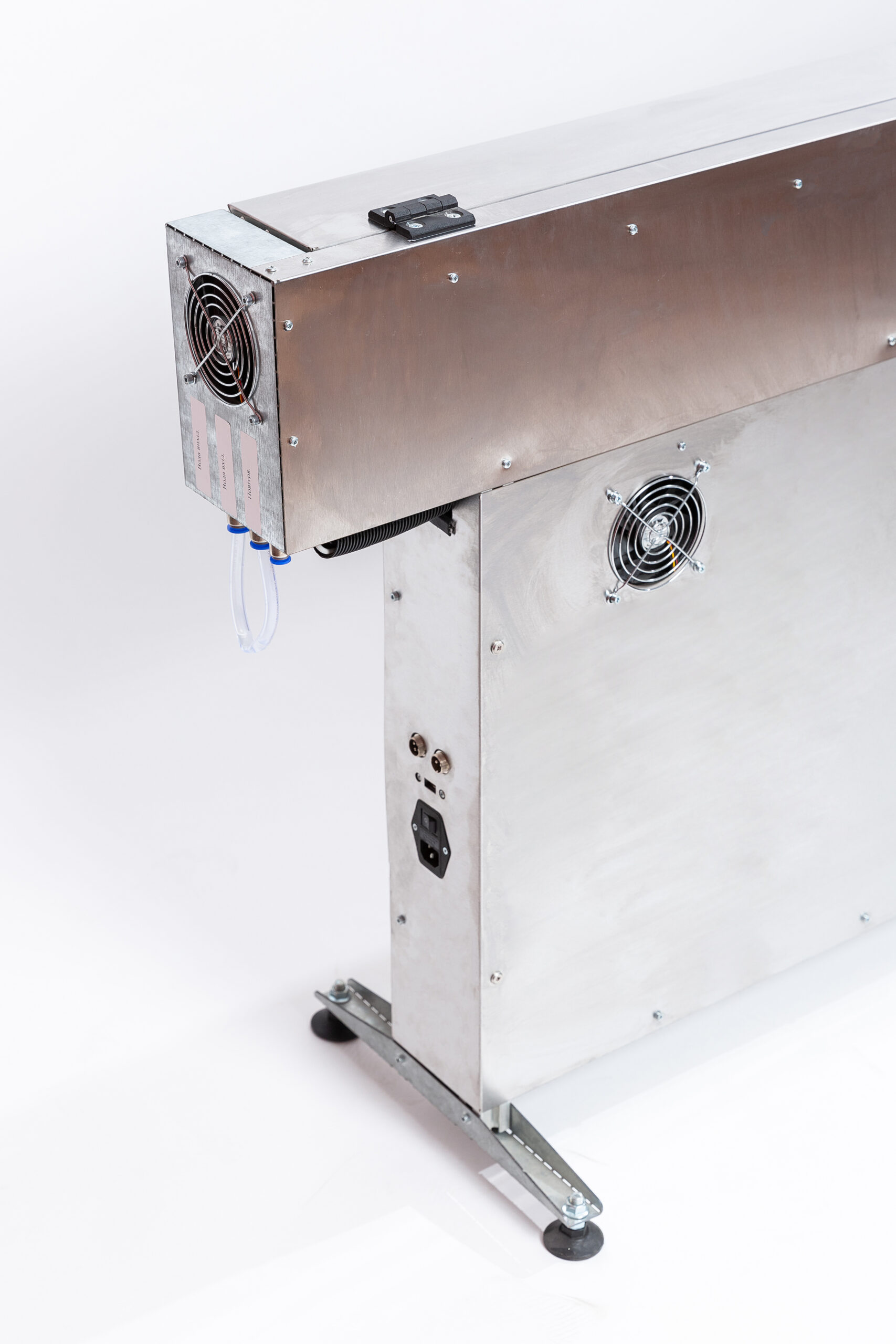 Машина оснащена системою водяного охолодження. Зверніть увагу, що система в якості теплоносія треба використовувати дистильовану воду, тому цей тип лазерів чутливий до вибору приміщення. Лазери не можна експлуатувати при температурах близьких до нуля градусів Цельсія.
