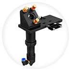 Верстат має лазерну головку з ручним фокусуванням. Фокусування лазера відбувається за рахунок спеціального цангового механізму, який змінює відстань до поверхні матеріалу, відстежуючи оптимальну відстань для різання, незалежно від перепадів і навіть сходинок. Головка має високу точність оптичних компонентів, відмінну якість променю, його стабільність. Система повітряного охолодження забезпечує найкращий ефект охолодження оптичної лінзи. Точне виготовлення, стабільні та надійні деталі. Регулювання діапазону фокусування 40 мм в напрямку осі Z, широке охоплення процесу різання. Лінза 12мм з фокусом 50.8мм виготовлена з ZnSe. Головка підтримує встановлення лінз – 1.5”, 2”, 2.5”, 4”.  При цьому в верстаті встановлено дзеркала 25мм.